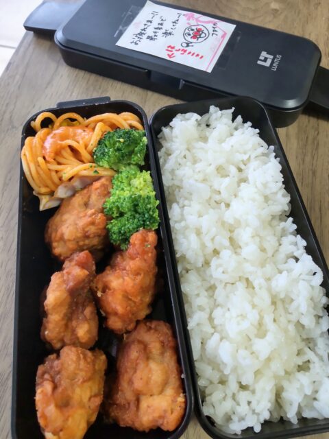 2日目は、息子の希望でロピアの冷凍唐揚げをたくさん入れたお弁当。